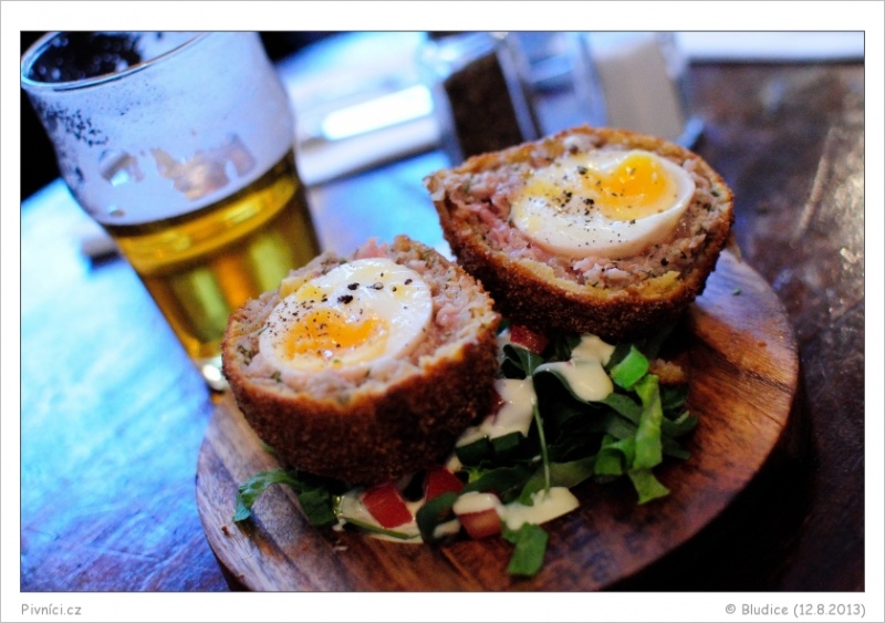 Různá jídla, většinou zajímavě vypadající, ceny na Londýn průměrné. Ochutnáno skotské vejce, výborné, šťavnaté a tak akorát kořeněné.Pivo (4 - výborné):