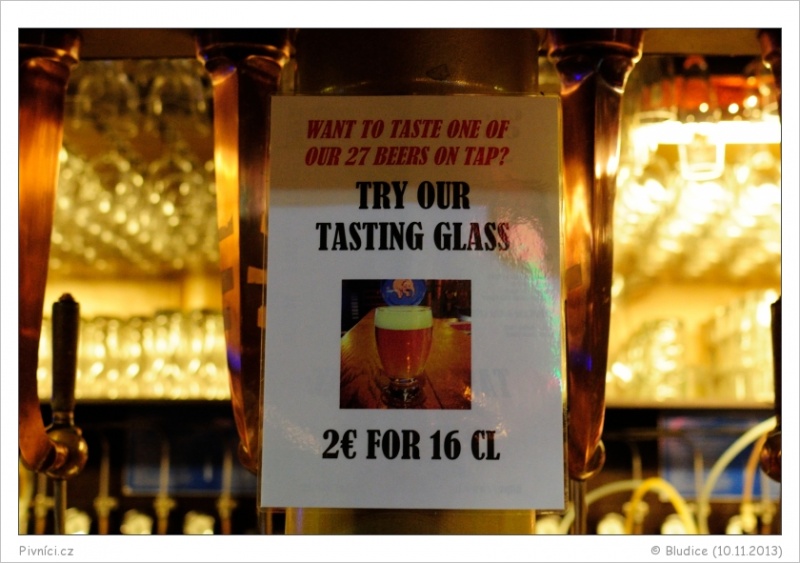 Kolem 25 píp, zhruba půlka jsou průmyslové věci, druhá zajímavé kousky z menších pivovarů, sem tam i něco méně obvyklého a zahraničního, výjimečně i nějaká ta vzácnost. Ceny jsou průměrné až kapku vyšší, jak u čeho. Piva jsou dobře ošetřená. Lze si dát ochutnávku 0,16 l za 2 €, což je u některých silných piv prakticky zadarmo.Celkový dojem (7 - velmi dobré):