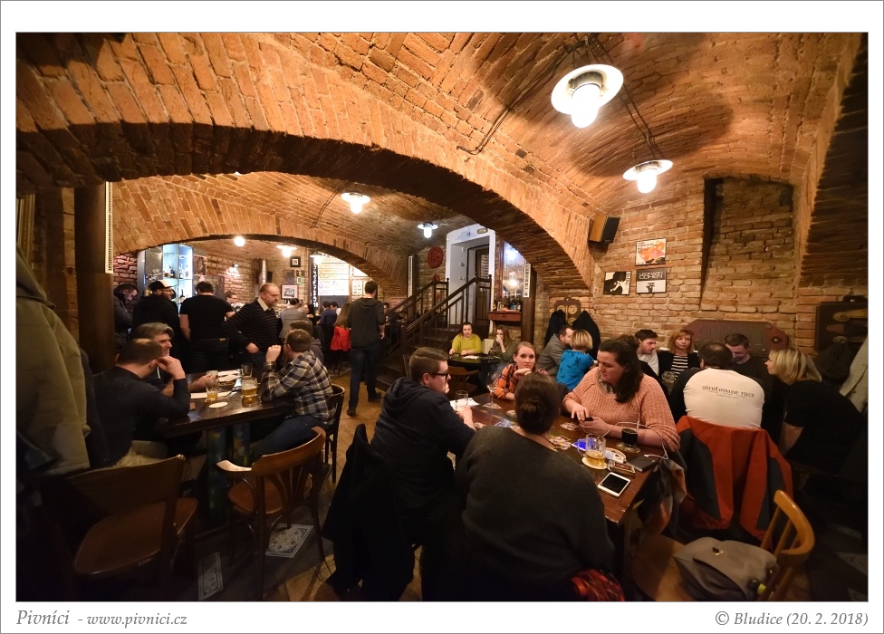 Pivní bar a v pražském Karlíně. Sídlí ve sklepních prostorách, má pěkné cihlové klenuté stropy a velký bar na kraji hlavní místnosti. Sedí se tu příjemně.Obsluha (3 - dobré):