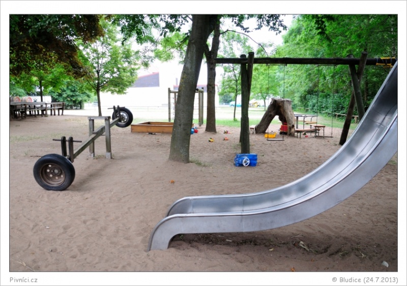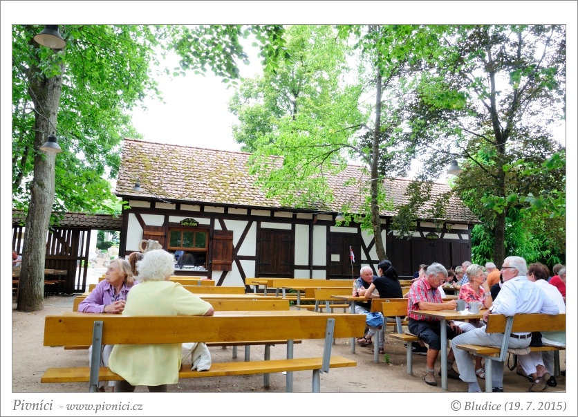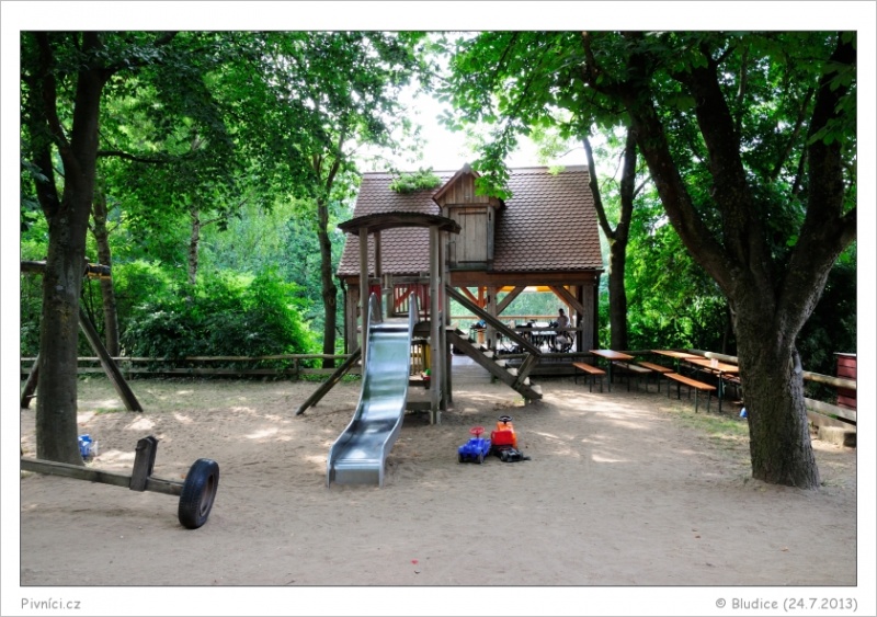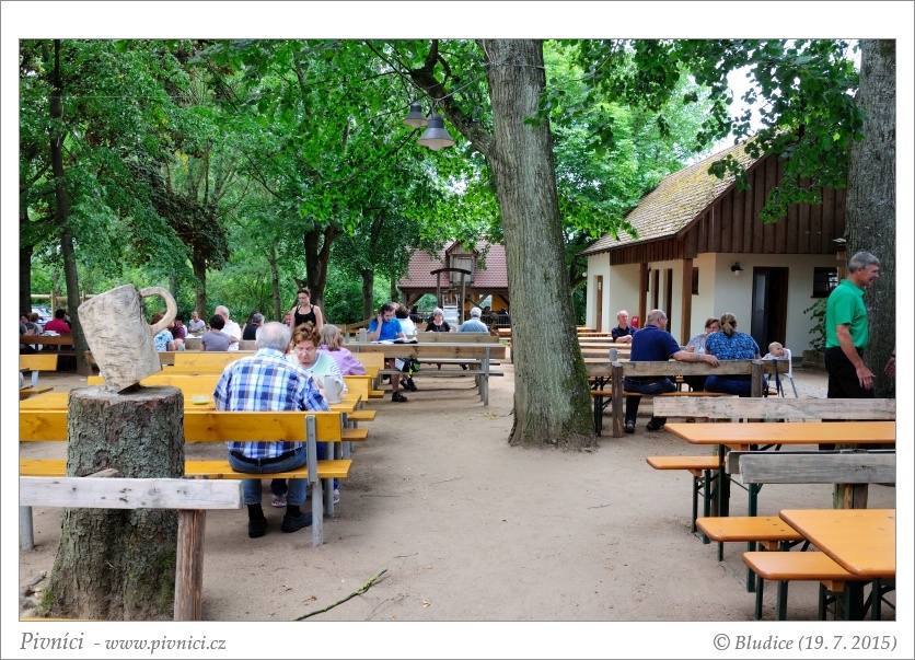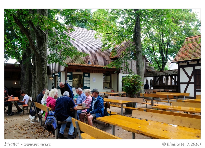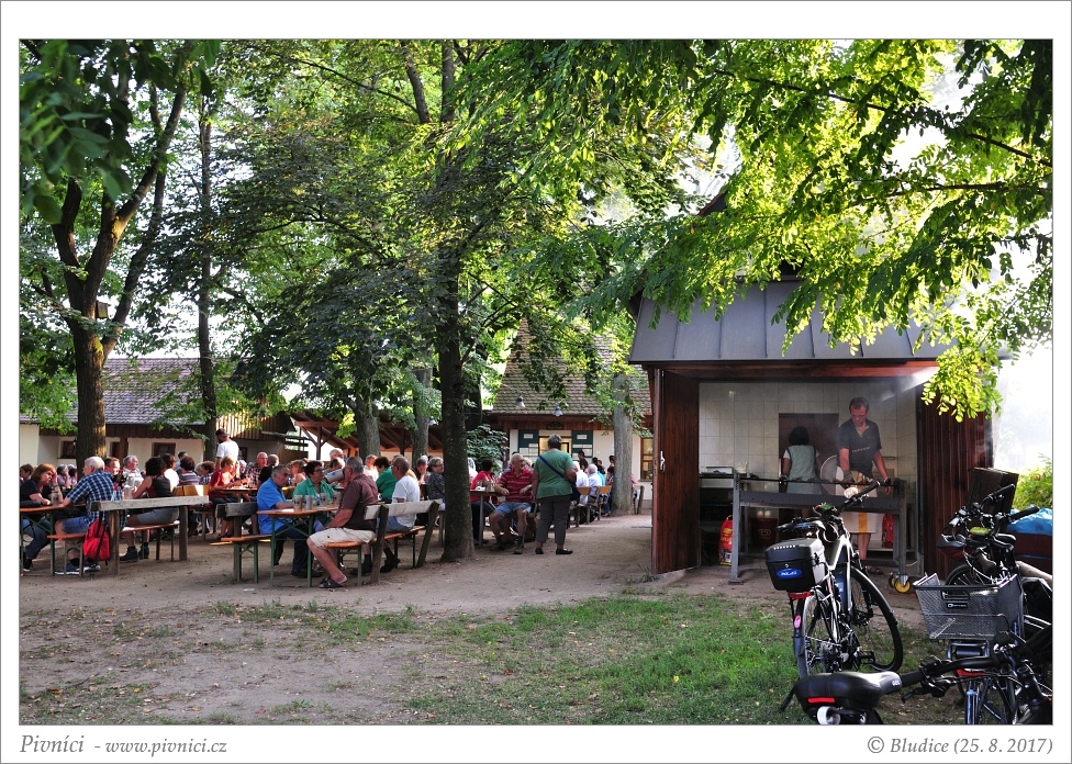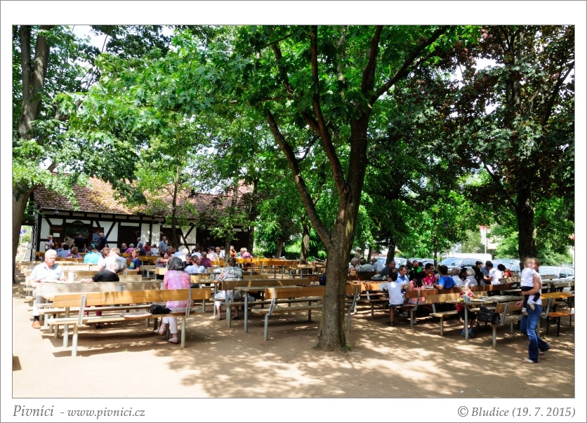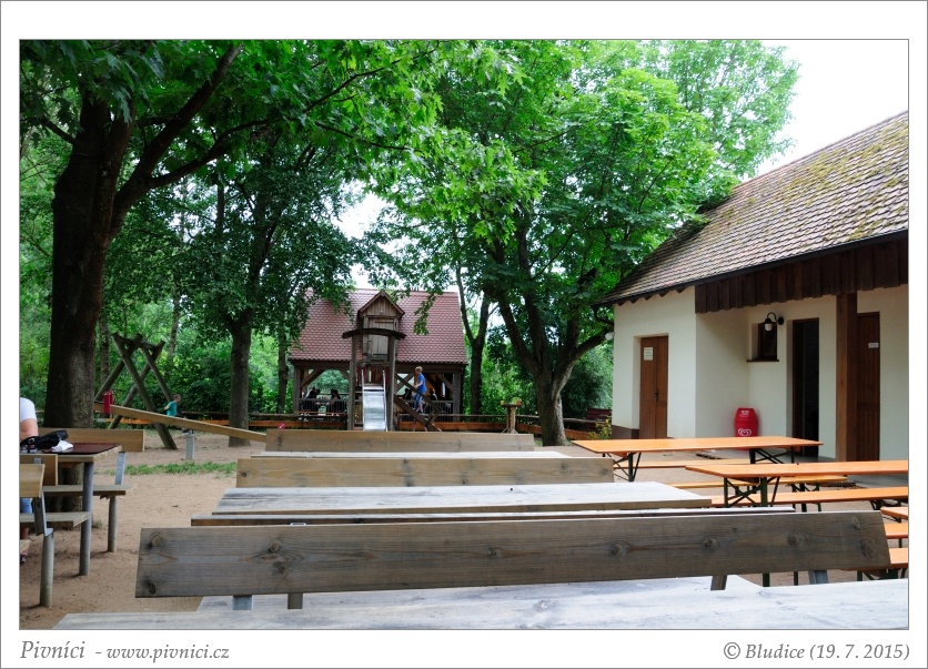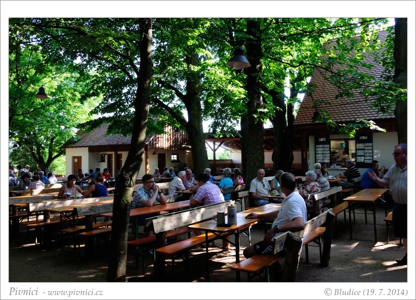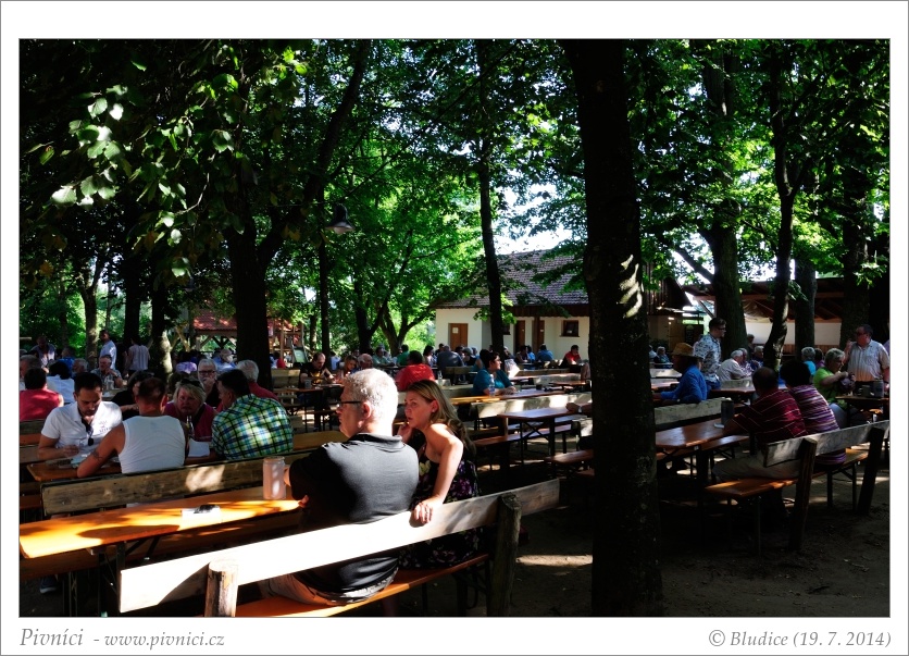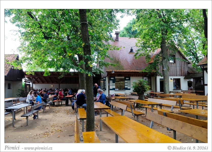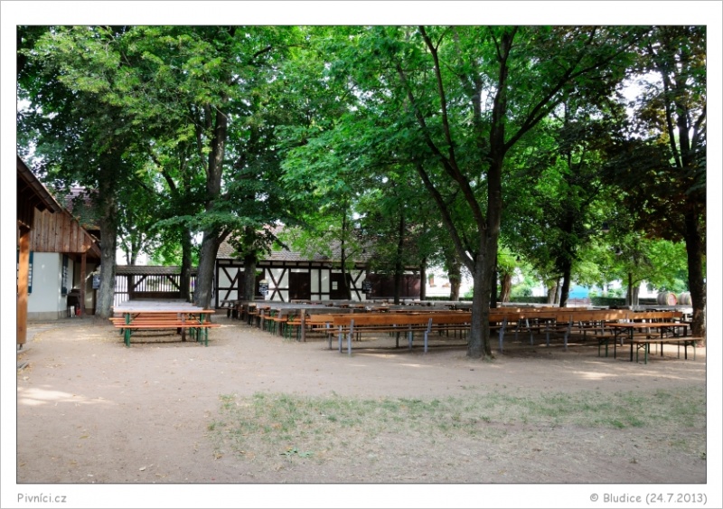 Krásná a velká zahrádka pod stromy, pěkné prostředí, kolem staré dřevěné soudky, stín mnoha kaštanů a lip, na kraji zahrady lze zahlédnout starou varnu… sedí se tu příjemně. V pátky a víkendy to zde bývá plné téměř k prasknutí, jsou tu místní i turisté (ale místo k sezení se vždy najde).Obsluha (4,5 - úchvatné):