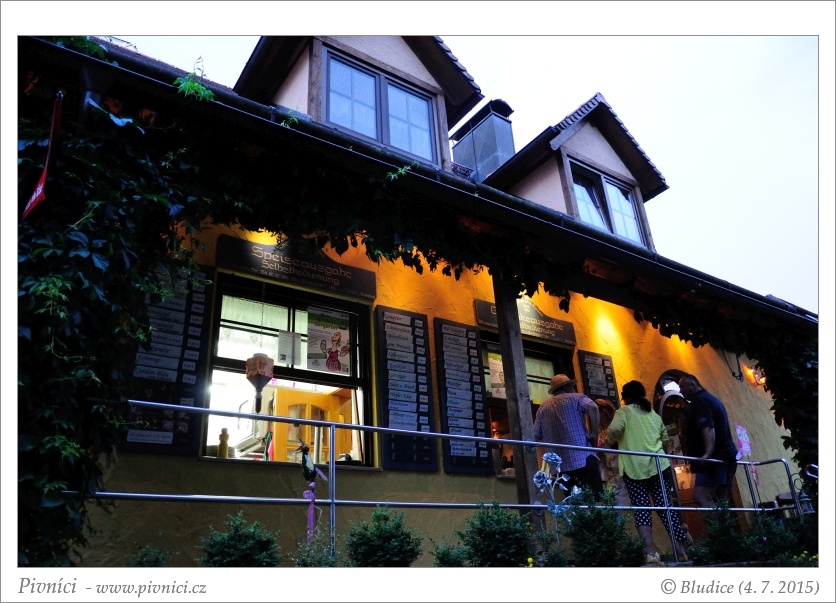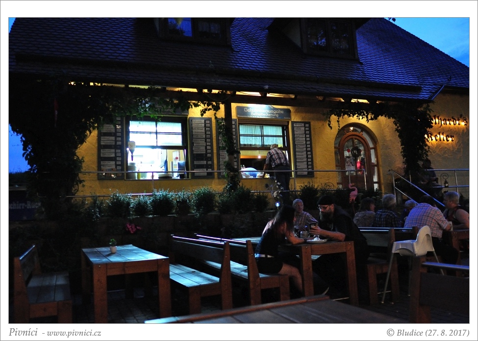 Na čepu je tu kellerbier Kellerliebe, vařený ve zdejším pivovaru Ebensfelder Brauhaus plus Kapuziner Weißbier a v láhvi ebensfeldský Adam Riese Urtrunk. Cenu nižší, piva velmi dobrá.Celkový dojem (7 - velmi dobré):