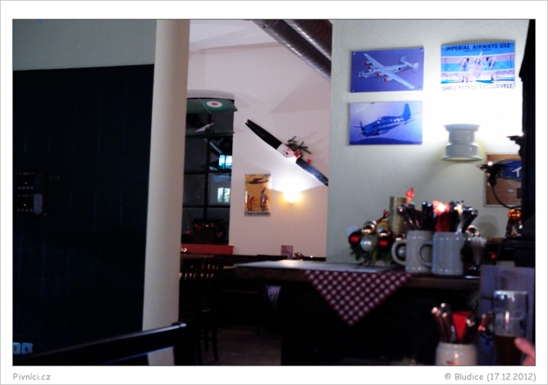 Menší místnosti z velmi vysokými stropy, moderně zařízené, za sklem se vyjímá měděná varna. Letecké obrazy a další příslušenství na stěnách… pohodové a příjemné.Obsluha (2 - průměr):