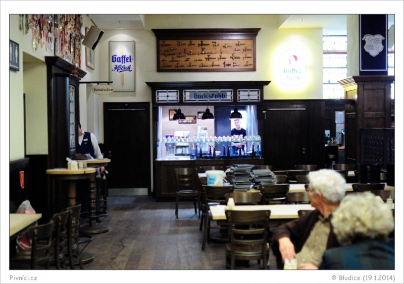 Na čepu Gaffel Kölsch z kegu. Cena průměrná, pivo fajn. Dále pár dalších Gaffel piv v láhvi.Celkový dojem (3,5 - podprůměr):