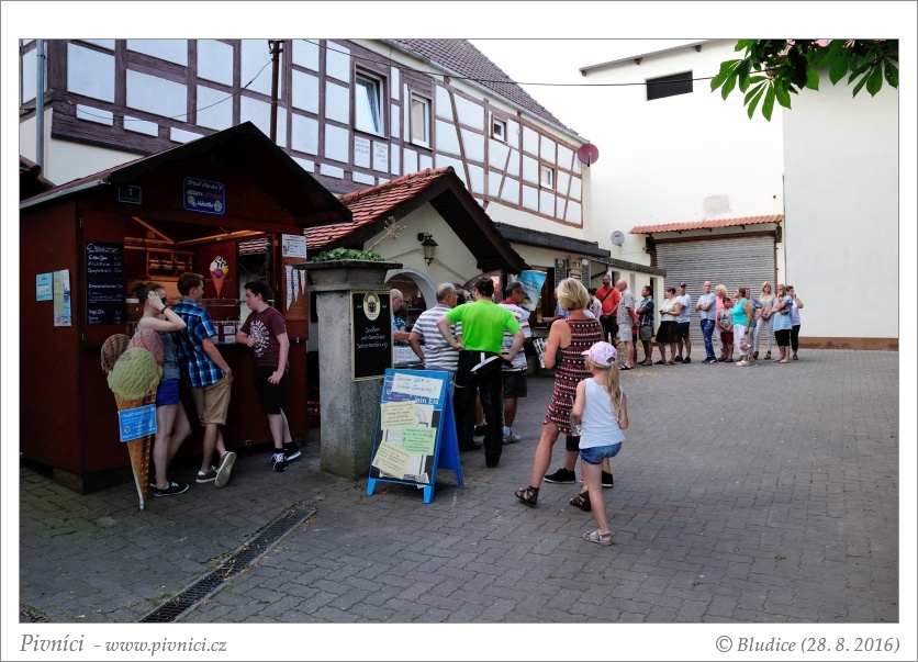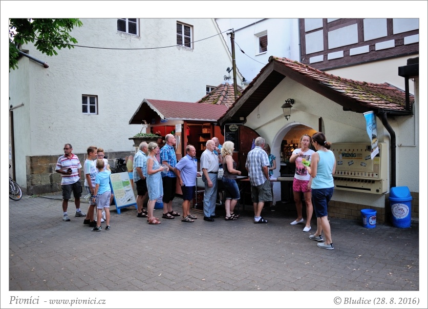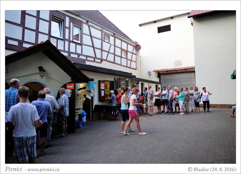 Chodí se k okénku, za naší návštěvy v neděli večer tu byla velká fronta. Klasická bavorská jídla, ceny průměrné. Neochutnáno. Od října zde mají domácí kapry, to bychom si líbit dali.Pivo (3,5 - velmi dobré):