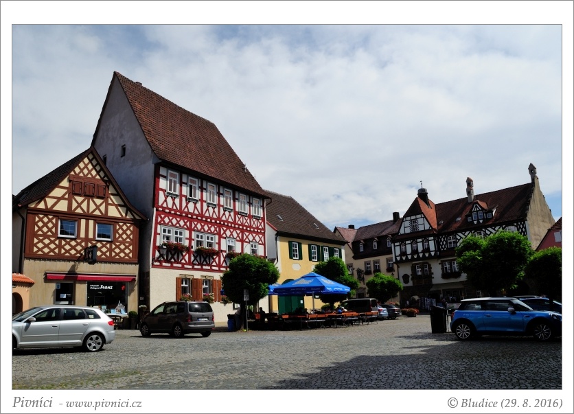 Skoro čtyři sta let starý penzion s restaurací v krásném historickém centru Sesslachu. Je v pěkném starém hrázděném domě, uvnitř je menší restaurace (ale někde dále v budově jsou další sály), venku na náměstíčku příjemná zahrádka ve stínu stromků a slunečníků. Příjemné místo.Obsluha (3,5 - velmi dobré):