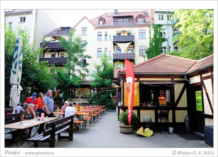 Restaurace s pivovarem v pěkné starší budově na kraji centra Lipska. Uvnitř je moc hezky zařízená ve starším stylu, na dvoře za budovou je menší zahrádka s obsluhou a dále za ní velká pivní zahrada (vlastně keller) s výdejním okýnkem.Obsluha (4 - výborné):