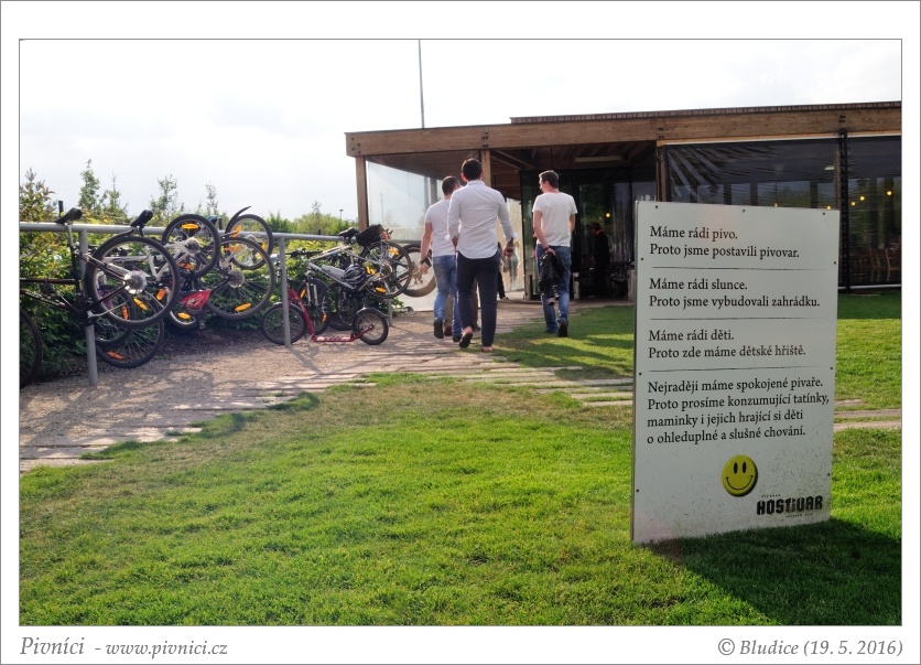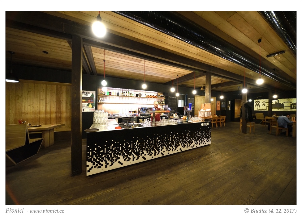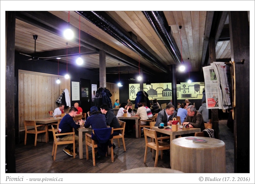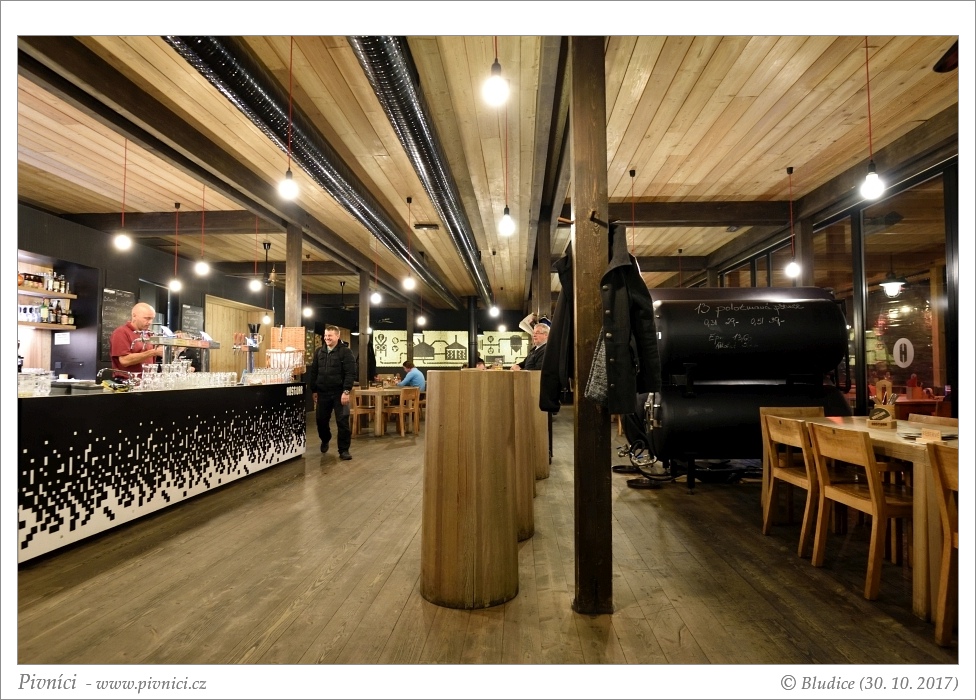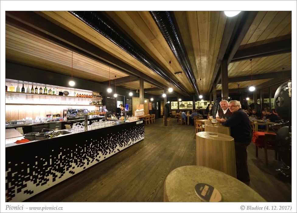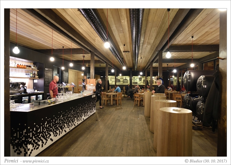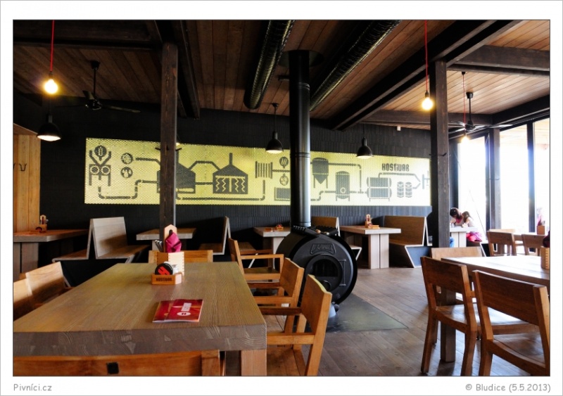 Budova pivovaru je taková strohá a moderní, z venku je přes prosklené stěny vidět varna a další zařízení pivovaru. Pivovarská restaurace je moc hezká, velmi moderní, s kombinací dřeva a kamenného obložení, prostorná a vzdušná. Naproti pěknému baru se nachází tanky, ze kterých se čepuje pivo, je na nich uvedeno i datum uvaření piva. V létě je venku hezká zahrádka, případně si s pivem můžete sednout na udržovaný trávník či si u ohniště opéct vlastní buřty.Obsluha (3 - dobré):