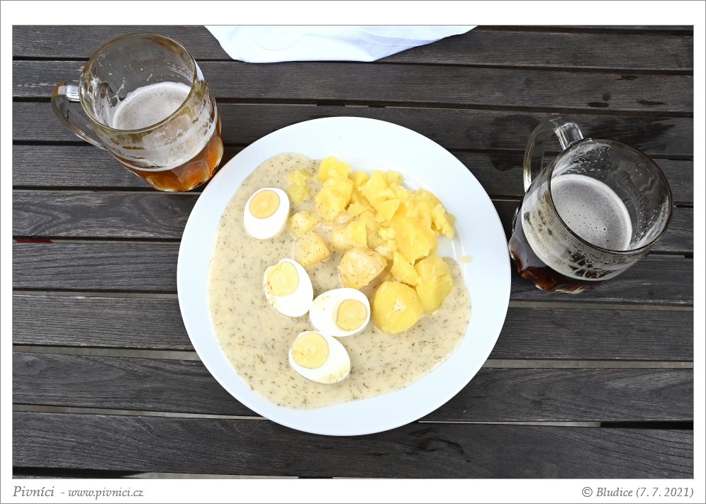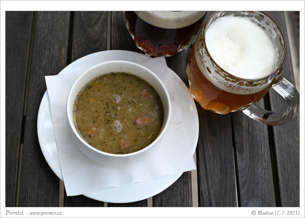 Přes den meníčka, večer asi jen studené pochutiny. Ceny lehce nižší. Dali jsme si čočkovou polévku s uzeninou a koprovou omáčku s vejcem, bylo to velmi dobré.Pivo (3 - dobré):