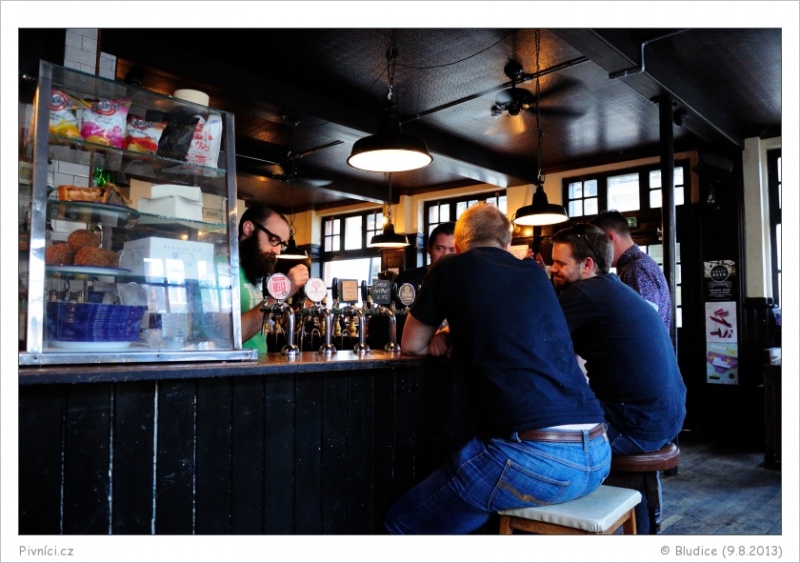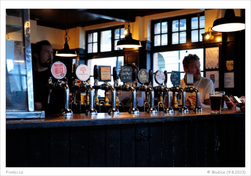Na čepu mnoho piv, kolem patnácti (počty se průběžně mění, řada píp je prázdných), cca půlka z casku. Dále několik ciderů z casku. Domácích piv je cca čtvrtina. Ceny nižší, domácí piva vesměs super, i ta ostatní jsou výtečná. Ale sklo není úplně ideální, kakáče typu Hoegaarden, staré ejlové bucláky a americké shakery. U lehkých ejlů to je jedno, ale na silná piva by to rozhodně chtělo něco lepšího.Celkový dojem (8,5 - výborné):