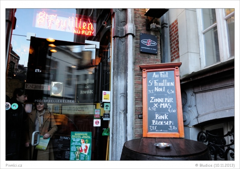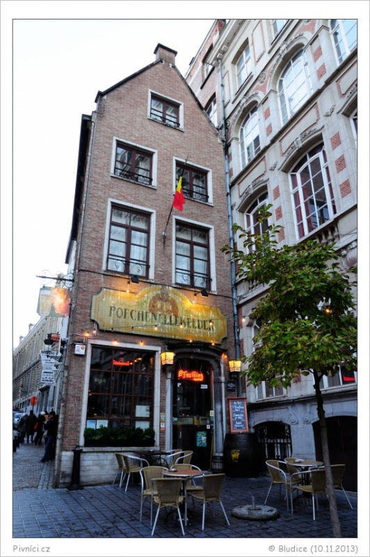 Hospůdka v centru Bruselu, hned vedle Čurajícího chlapečka. Je to zde takové stísněné, jeden stoleček vedle druhého, výzdoba je hodně přeplácaná, mnoho loutek, obrazů a všemožných cetek. Kýčovité, ale překvapivě celkem útulné. Na pozadí hraje příjemný jazz. I v neděli odpoledne je tu plně narváno.Obsluha (3,5 - velmi dobré):