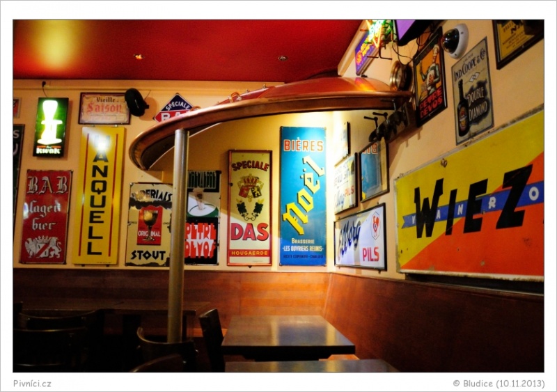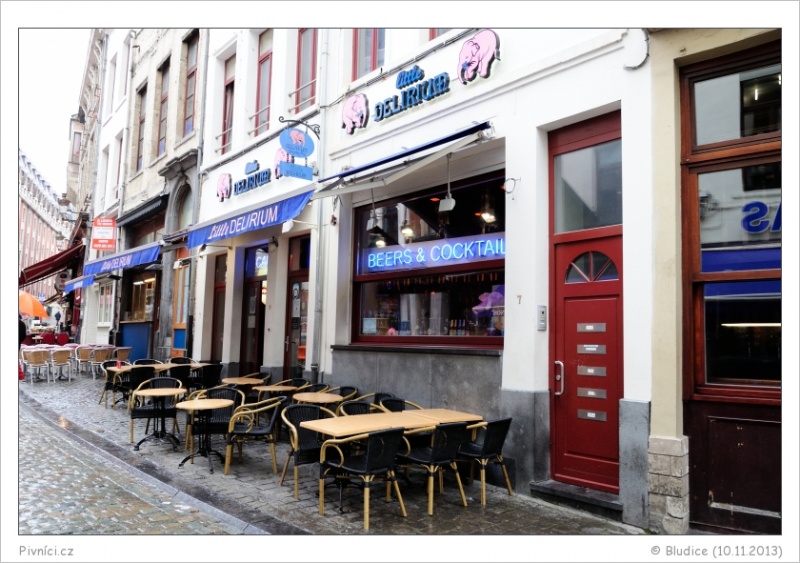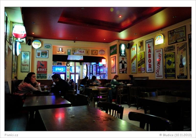 Uprostřed města, kousek od radnice se nachází středně velká hospůdka / kavárna. Uvnitř je celkem slušně vyzdobené, mnoho starých pivních cedulí, dřevěné stoly, sem tam nějaký neon. Hraje tu mix hudby, vesměs pop, středně hlasitě. Sedí se tu příjemně. Ale večer tu asi podobně jako ve velkém Deliriu bude narváno a hlučno.Obsluha (3 - dobré):