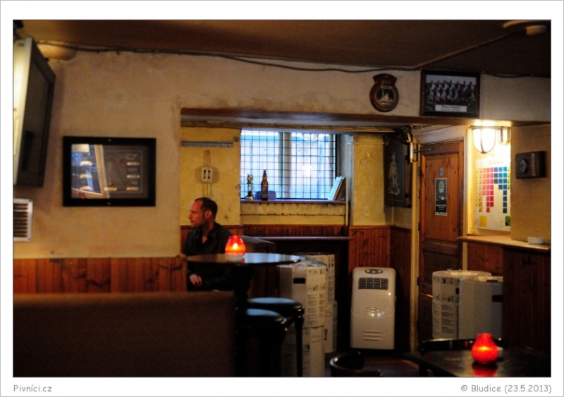 Hezká hospůdka anglického stylu, napůl pod zemí, s nízkým stropem, vybavená pěkně ve dřevě. Trošku zašlá, ale nikoliv odpudivě. Hraje zde pop / rock hudba s hlasitostí tak akorát. Bohužel je to zde kuřácké a celkem to je znát.Obsluha (3,5 - velmi dobré):