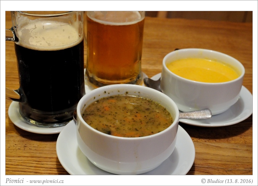 Vesměz klasická česká jídla, k tomu i pár salátů a méně tradičních záležitostí. Ceny průměrné až lehce vyšší. Dali jsme si šumavskou bramboračku a dýňovo-bramborový krém, obojí bylo velmi chutné.Pivo (3 - dobré):