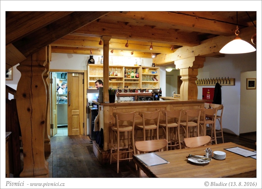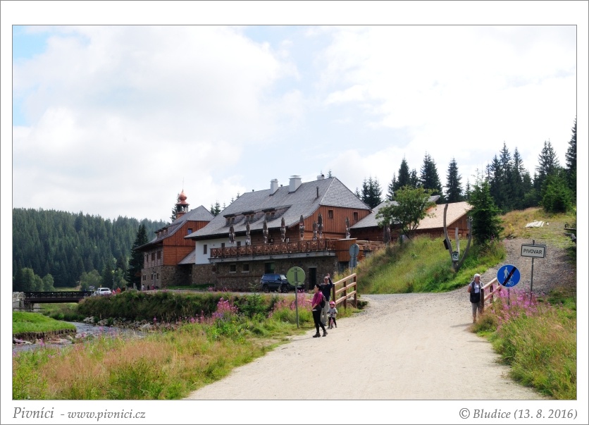 Penzion s pivovarem a restaurací v turistické Modravě. Restaurace je pěkná, celá vyvedená ve světlém dřevě. Nahoře je fajn terasa, přístupná i z venku, škoda, že jsme si jí všimli až při druhé návštěvě při odchodu.Obsluha (2,5 - lehce nadprůměr):