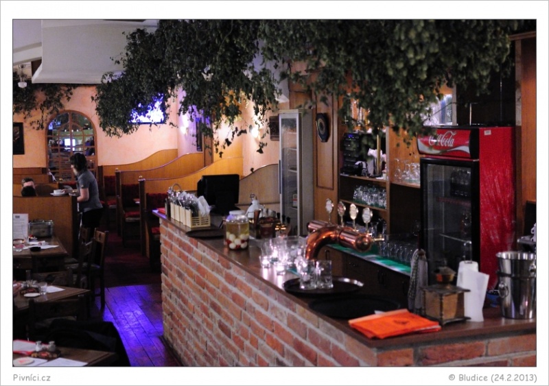 Z venku to nevypadá nijak hezky, ale uvnitř je podnik hezky zařízen, cihlové stěny a zídky, hezká varna u vchodu, pěkné dřevěné stolky. Bohužel se v této části kouří, nekuřácká místnost vedle tak hezká není.Obsluha (3,5 - velmi dobré):