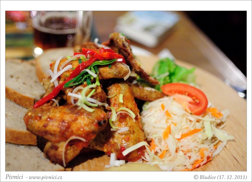 Ochutnány pikantní kuřecí křidélka, která byla velmi dobrá. Ceny jídla jsou velmi přijatelné.Pivo (3,5 - velmi dobré):