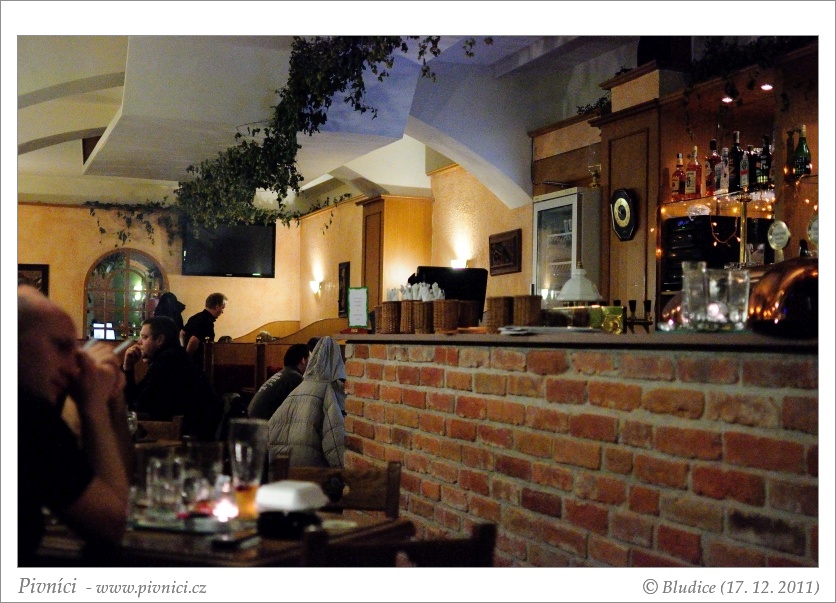 U baru kuřácká místnost, vpravo od vchodu oddělená místnost nekuřácká vybavená ale poněkud méně pohodlnějšími stoly a lavicemi… Kuřáky tu mají asi radši :) Přímo u vchodu měděná varna.Obsluha (3 - dobré):
