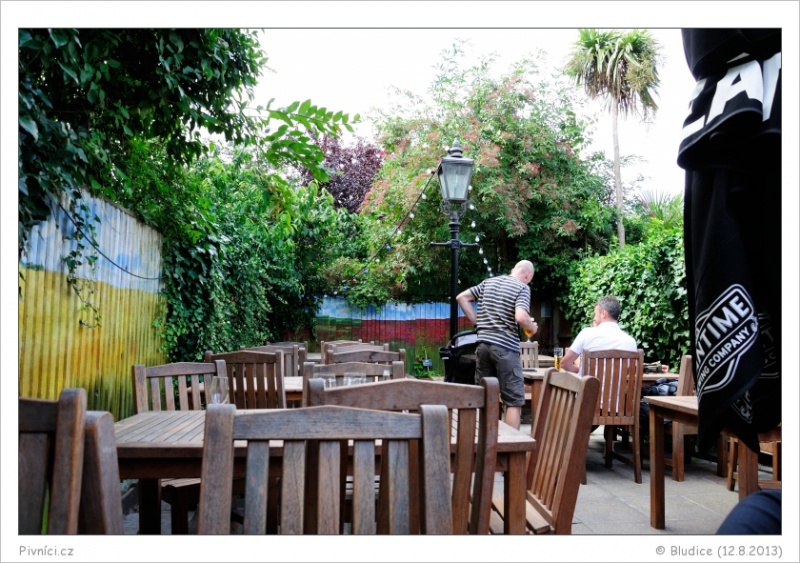 Úzký pub v pěkné uličce, uvnitř je to ale prostorné, vzadu je navíc bezva zahrádka plná zeleně. Jednoduše zařízené, dřevěné stoly, pěkný bar. Moc příjemné.Obsluha (4 - výborné):