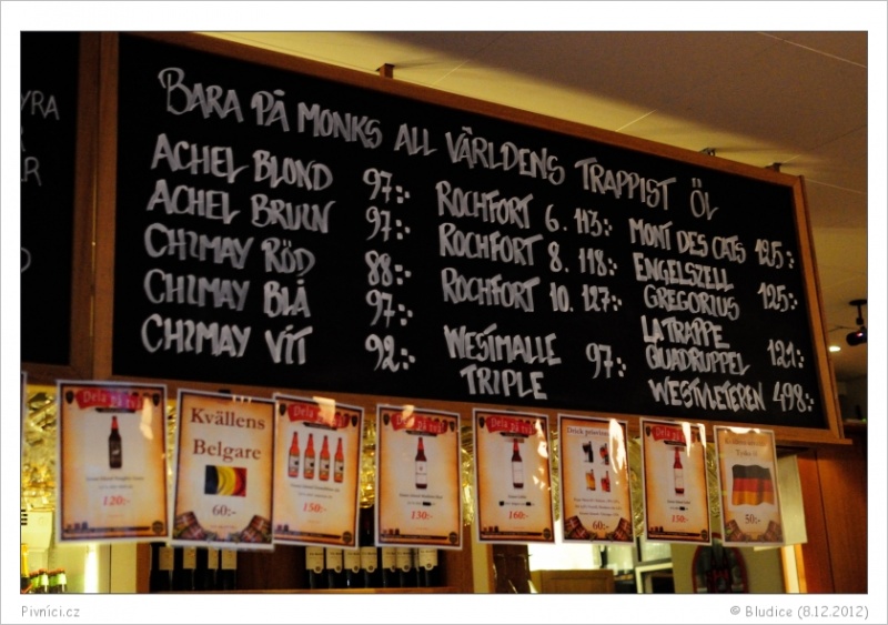 Na čepu zhruba 5 či více vlastních piv, z toho ležáky jsou vařené v německém Ausgburgu. Dál je na čepu několik amerických, anglických i švédských piv, a též piva od De Molena, od kterého je v nabídce i velké množství lahvových kousků. Ceny jsou na Stockholm lehce vyšší, ale ne přehnaně.Celkový dojem (8 - výborné):