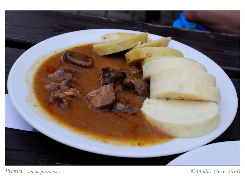 Klasická česká jídla, ceny průměrné (denní menu) až malinko vyšší (stálá nabídka). Dali jsme si vepřové s knedlíky, tlačenku a dršťkovou polévku z hlívy ústřičné. Při třetí návštěvě jsme si dali obalovaný karbanátek a gulášovou polévku. Syté, dobré.Pivo (3 - dobré):