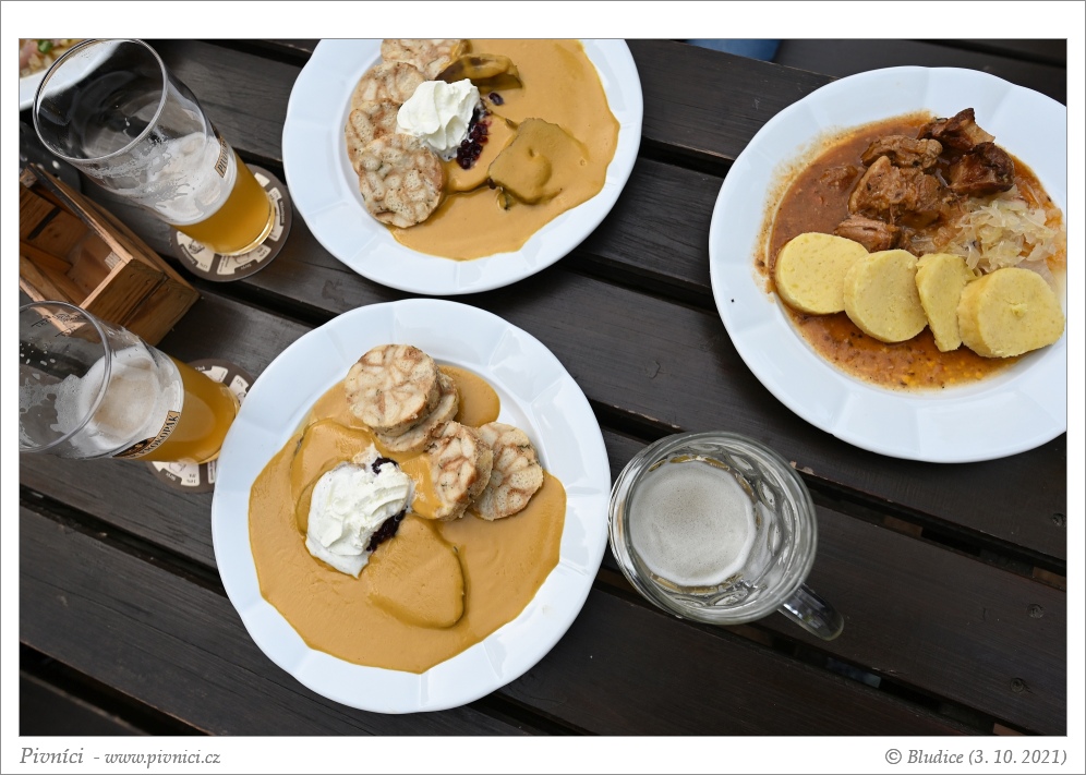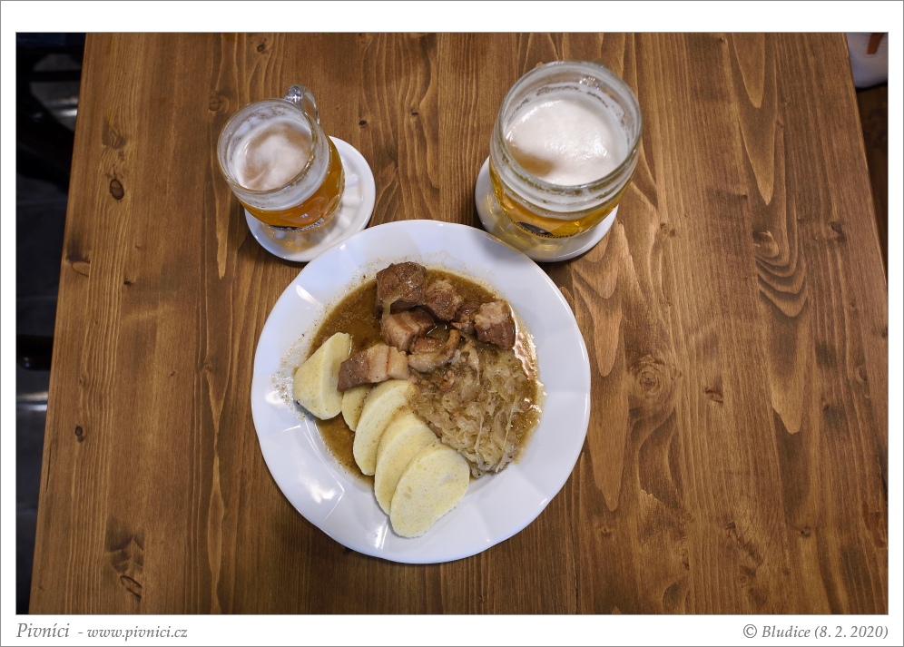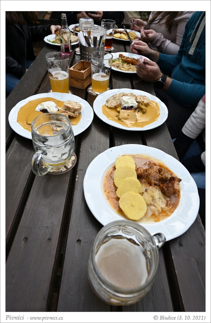 Menší i větší jídla, povětšinou česká klasika. Ceny jsou vzhledem k populární lokalitě spíše průměrné. Při první návštěvě jsme si dali výpečky se zelím a knedlíkem, při druhé svíčkovou s knedlíkem a česnečku. Vše bylo dobré, bez problémů.Pivo (3,5 - velmi dobré):