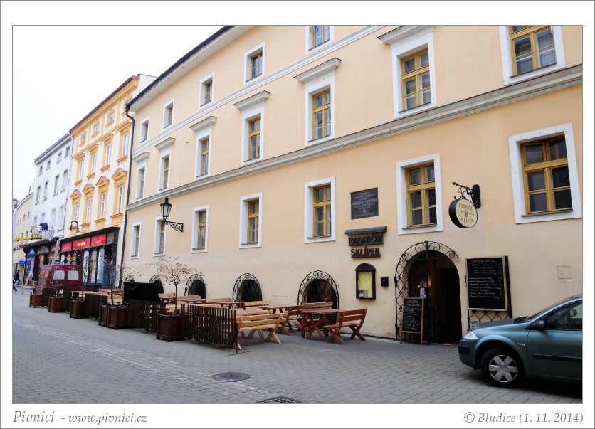 Na čepu výběr piv z kroměřížských minipivovarů – 1. selského a Maxmiliána, dále i piva z jiných moravských mini i menších průmyslových pivovarů. Za naší návštěvy dva a dva kroměřížské, jeden Parník, Poutník a Dalešice. Ceny průměrné. Je možné zde zakoupit i lahvová piva z kroměřížských mini.Celkový dojem (5,5 - lehký nadprůměr):