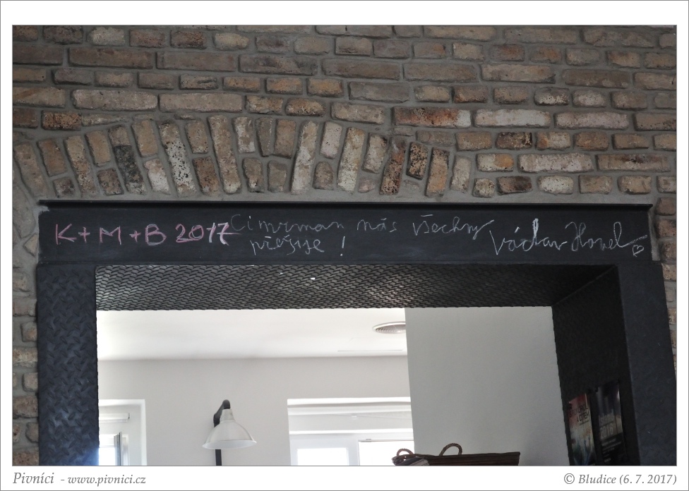 Na čepu tanková světlá jedenáctka, polotmavá třináctka, sezónní speciál (za naší návštěvy Protinožcova šestnáctka s australskými chmely), plus i hostující pivo, teď zrovna nealko. Ceny průměrné až lehce vyšší, jinde nám chomutovská piva příliš nechutnala, ale tady pod komínem byla dobrá. Snad jenom o čistotu skla by zde mohli lépe pečovat.Celkový dojem (7 - velmi dobré):