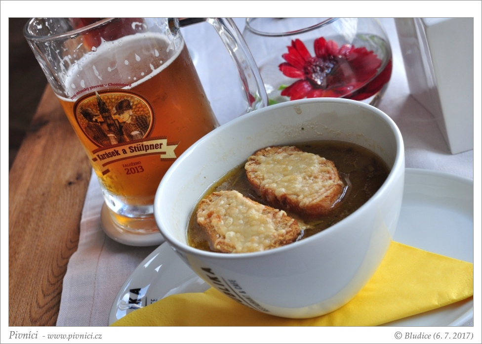Všemožné zajímavě vypadající pokrmy, ceny trochu vyšší. Přišli jsme dopoledne na otvíračku, tak jsme si dali jen na chuť normanskou cibulačku se zapečenými sýrovými tousty. Byla velmi chutná, příště se nebudeme bát si dát něco většího.Pivo (3 - dobré):