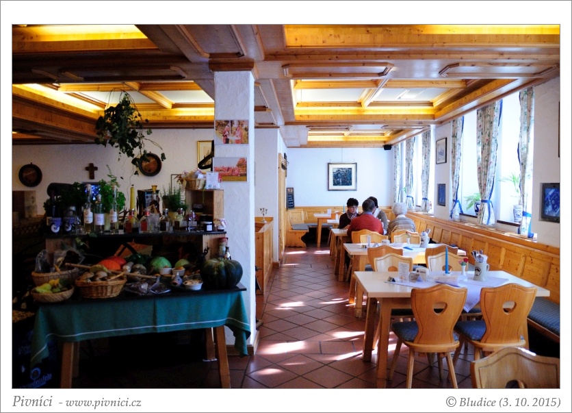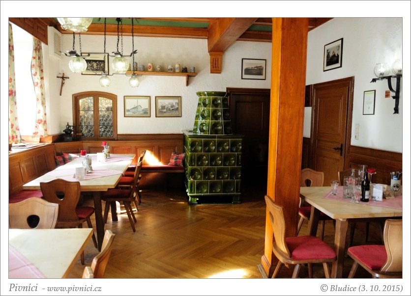 Pivovarská restaurace na kraji pivovarského areálu, je trochu taková nóbl, skoro až snobská, docela jiná než běžné bavorské pivovarské hospody. Hezky zařízená, s několika místnostmi a pěknými kachlovými kamny.Obsluha (2 - průměr):