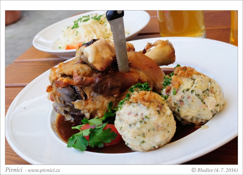 Klasická německá jídla, burgery, plus sezonní speciality, za naší návštěvy lišky na několik způsobů. Ceny lehce vyšší. Dali jsme si napůl koleno se zelím a knedlíky – bylo to chutné a velmi syté, málem jsme to nezvládli dojíst.Pivo (2,5 - lehce nadprůměr):