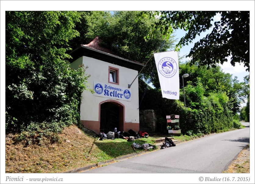 Keller zdejšího pivovaru Schwan, leží na úpatí kopce na kraji městečka. Je hezký, se starou budovou, která je moderně zrekonstruovaná. Stín tu poskytuje mnoho stromů, je tu i hodně květin a další zeleně. Příjemné posezení.Obsluha (3,5 - velmi dobré):
