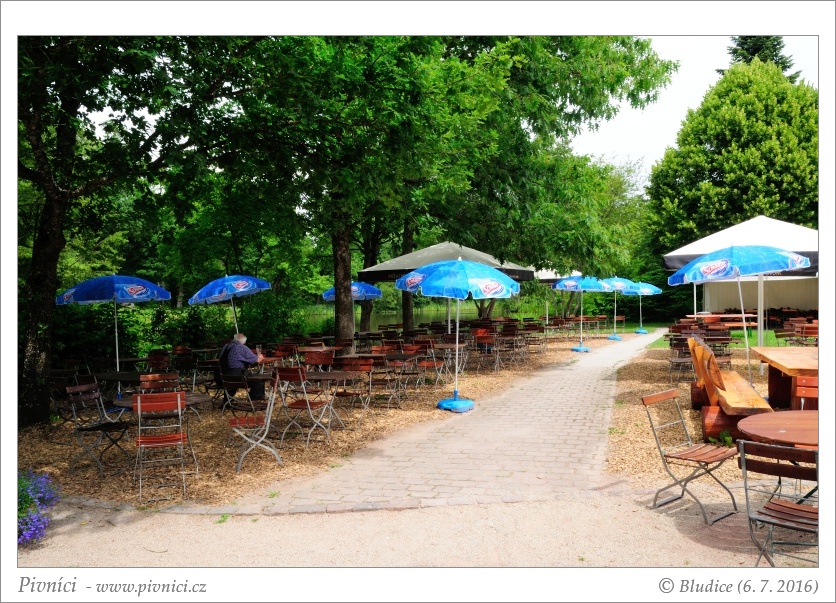Restaurace v pěkném dřevěném domě, vzadu ještě rozšířená o zastřešený altánek a malou zahrádku. Za restaurací je u jezírka velká zahrádka (vlastně takový keller). Mnoho stolků ve stínu rozličných stromů a slunečníků, na břehu hezkého a chladivého rybníčku. Zde je to bez obsluhy, pro pivo a jídlo se chodí do domku, který připomíná něco mezi cukrárnou a výdejnou školního jídla.Obsluha: