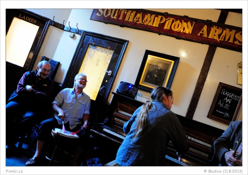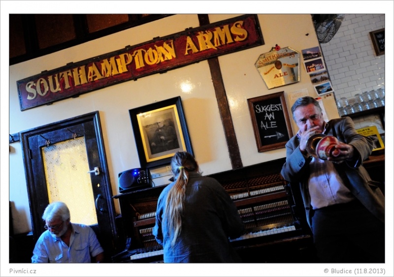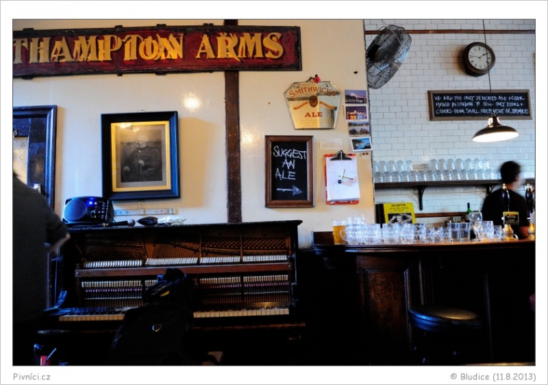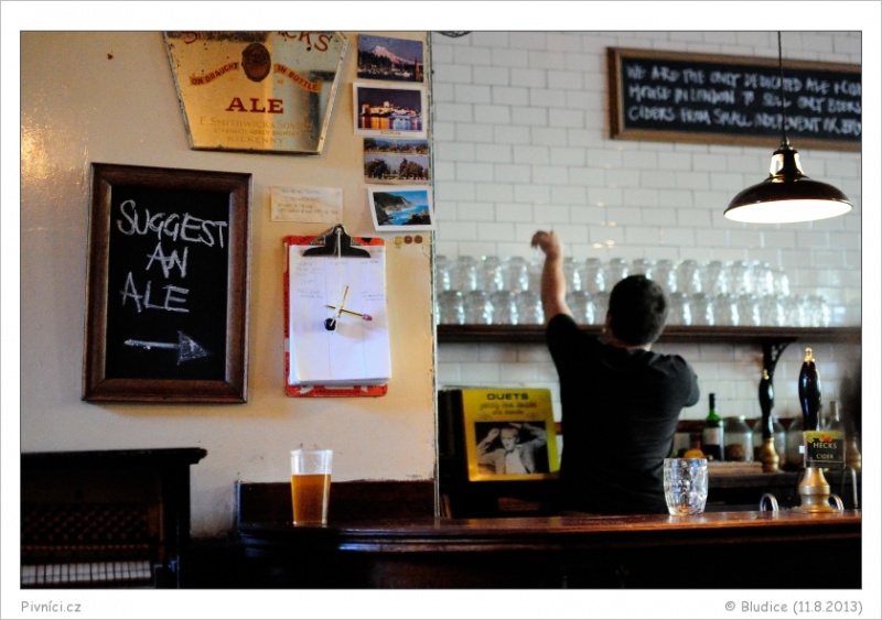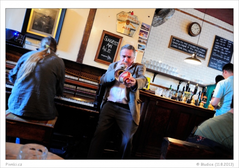 Starý pub, uvnitř pěkný dobový, s fajn dřevěným barem a mnoha pěknými pákovými pípami. Je to takové lidové prostředí, žádné blyštivé zlato jako v lepších pubech. Sedí se tu moc příjemně, za naší návštěvy tu byla živá hudba, klavír s občasným přídavkem zpěvu či trumpety, takové pohodové, příjemně dokreslující atmosféru. Je to zde menší a trochu stísněné, ale to u úspěšného pubu není nečekané.Obsluha (3 - dobré):