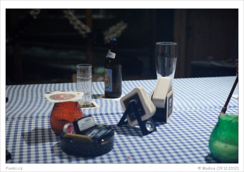 Zapadlý vesnický baráček, uvnitř jedna místnost s jedním stolem. Zařízené je to zde jednoduše, na zdech visí pár cedulí. Vedle je místnost s varnou a prodejnou piv.Obsluha (4,5 - úchvatné):
