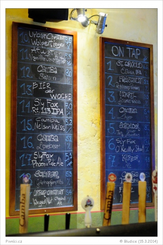 Celkem je zde 40 piv na čepu, asi čtvrtina jsou domácí Camba piva, velká část zbytku jsou americká piva, dost často méně známá a vzácná. I zbytek piv z Německa a Evropy jsou zajímavé kousky. Ceny jsou na Mnichov průměrné až kapku vyšší, ale vzhledem k tomu, o jaká piva se jedná, jsou přijatelné. Dále na mini pípách 4 Camba piva dozrávaná v různých sudech po jiném alkoholu. Řada dalších zajímavých piv je k dispozici v láhvi.Celkový dojem (8,5 - výborné):
