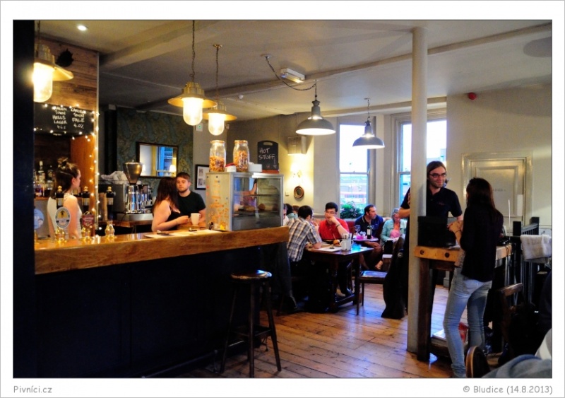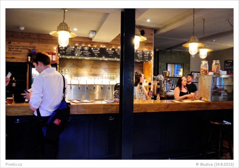 Na čepu z casku dvě piva (dvě další pípy za nás prázdné), dále cca deset piv z kegu. Celkem zajímavý výběr z anglických převážně menších pivovarů. Ceny průměrné až lehce vyšší.Celkový dojem (7,5 - velmi dobré):
