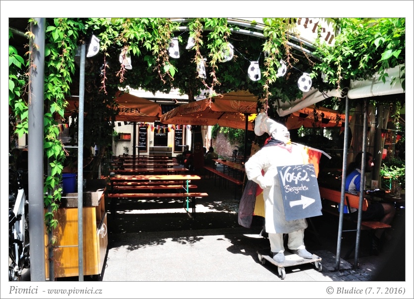 Restaurační pivovar v centru Karlsruhe. Má fajn restauraci, vzadu na dvoře je hezká zahrádka. Stín na na zahrádce poskytují platany, slunečníky a pergoly porostlé břečťanem. Příjemně chladí i malý vodopád na zdi restaurace.Obsluha (2,5 - lehce nadprůměr):