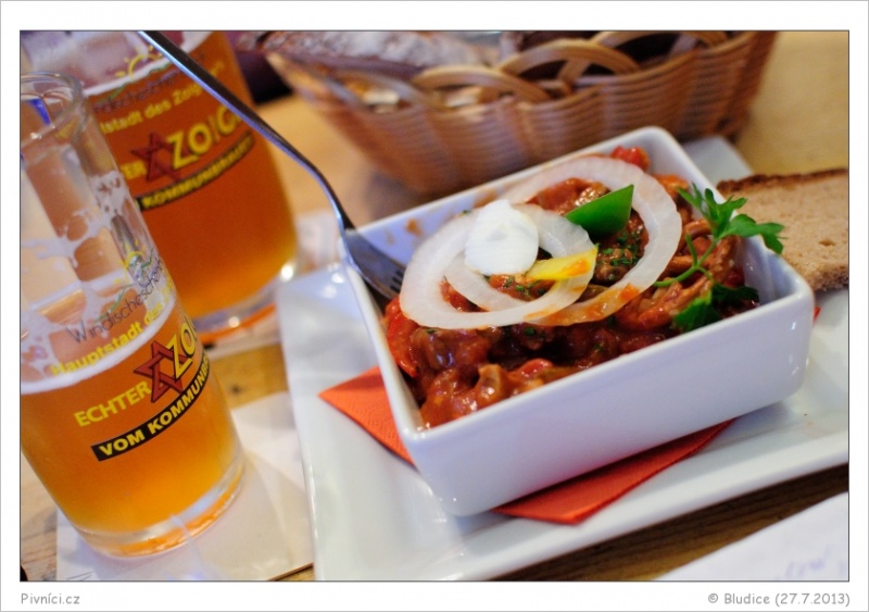 Na čepu Zoigl, lze ho i namíchat jako radler. Cena je nižší, pivo je dobré. Jablečná limonáda (apfelschorle) je zde také bezva, levná a velmi osvěžující.Celkový dojem (7 - velmi dobré):