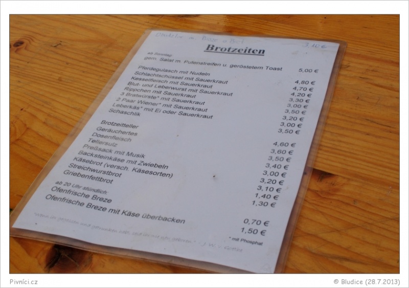 Mnoho pochutin k pivu. Ceny nízké. Ochutnán Obatzter (mazlavý pivní sýr) a Pressack mit Musik (tři různé tlačenky), obojí fajn.Pivo (2,5 - lehce nadprůměr):