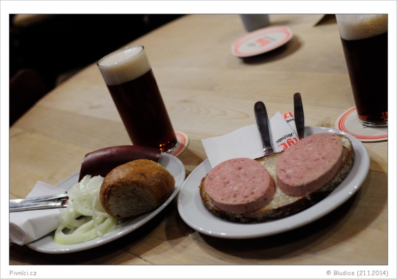 Všemožné pochutiny k pivu a pár větších pokrmů. Ceny jsou nižší. Ochutnali jsme Leberwurst (jitrnice) a Blutwurst (jelito). Jitrnice dobrá a jelito výtečné.Pivo (4,5 - úchvatné):