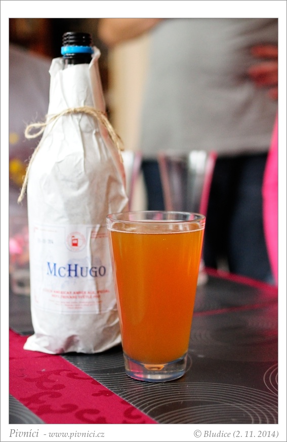 Tmavě zlatá až oranžová barva, středně zakalené, velmi nízká bílá pěna, je hned pryč.Vůně (2 - průměr):