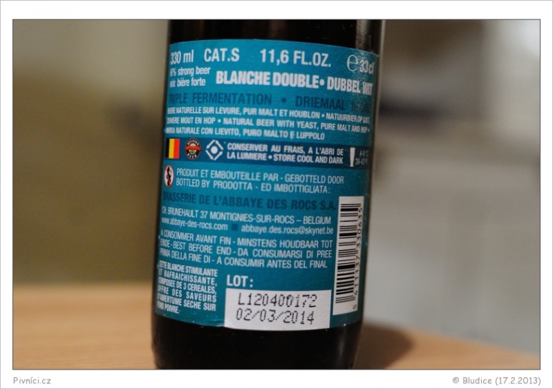 Osvěžující a velmi dobře pitelný harmonický Wit.Minimální trvanlivost: 2.3.2014