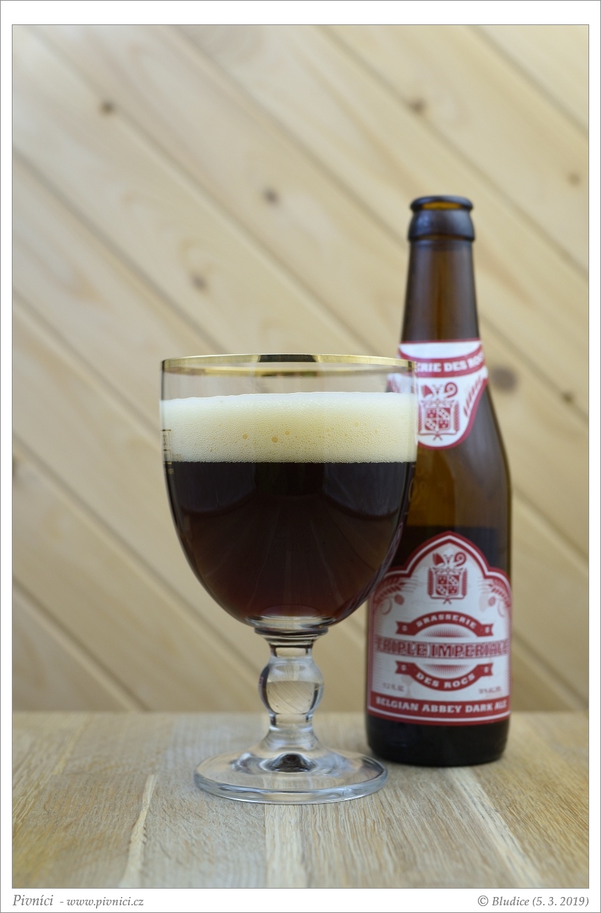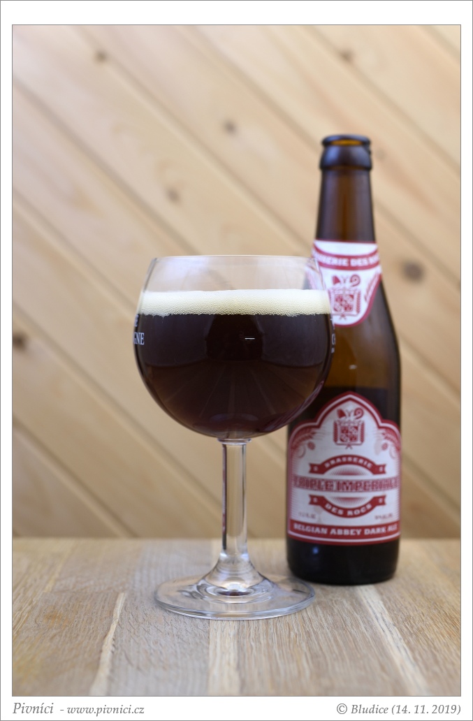 Barva tmavě mahagonová, téměř čiré. Pěkná hustá poměrně stabilní pěna světle béžové barvy.Vůně (3 - dobré):