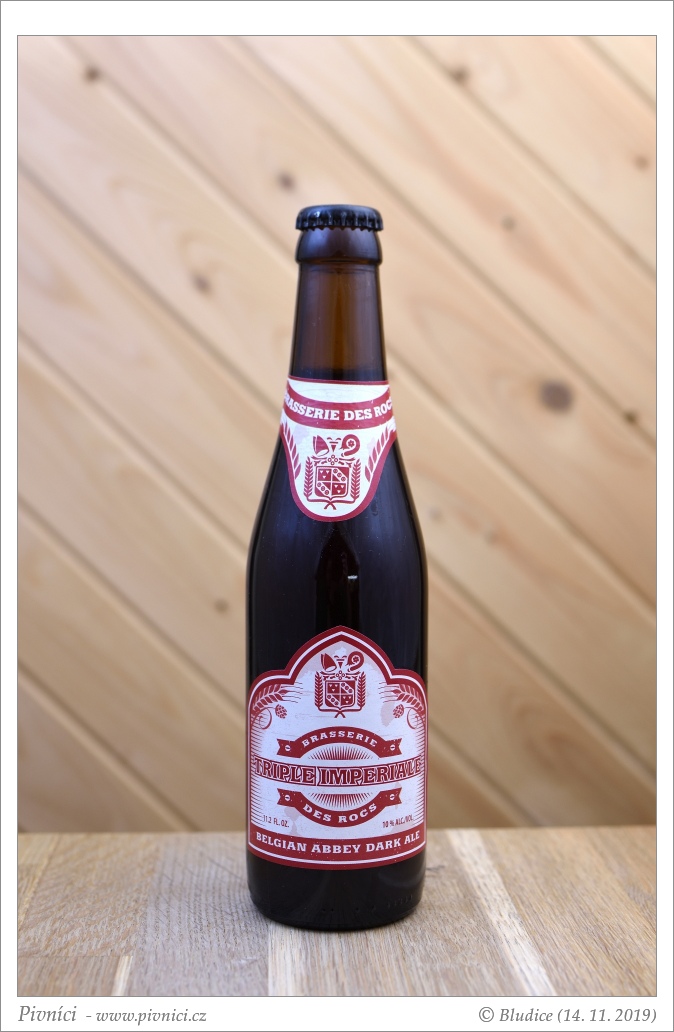 Mahagonová barva, čiré. Pěkná světlá pěna s okrovým nádechem, velmi dobře drží.Vůně (3,5 - velmi dobré):