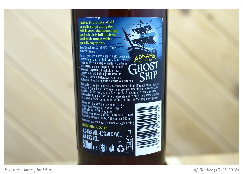 Pěkně chmelené pivo, velmi dobře se popíjí.Minimální trvanlivost: 30. listopadu 2019