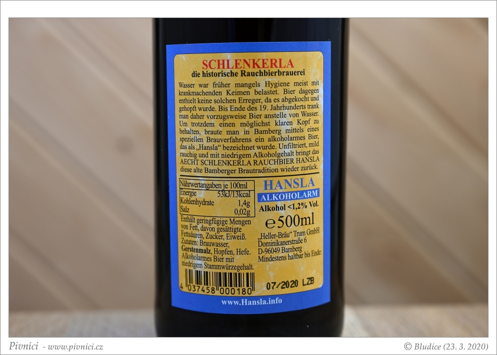 Vůně výrazně uzená, lehce karamelová a oříšková.Chuť (3,5 - velmi dobré):