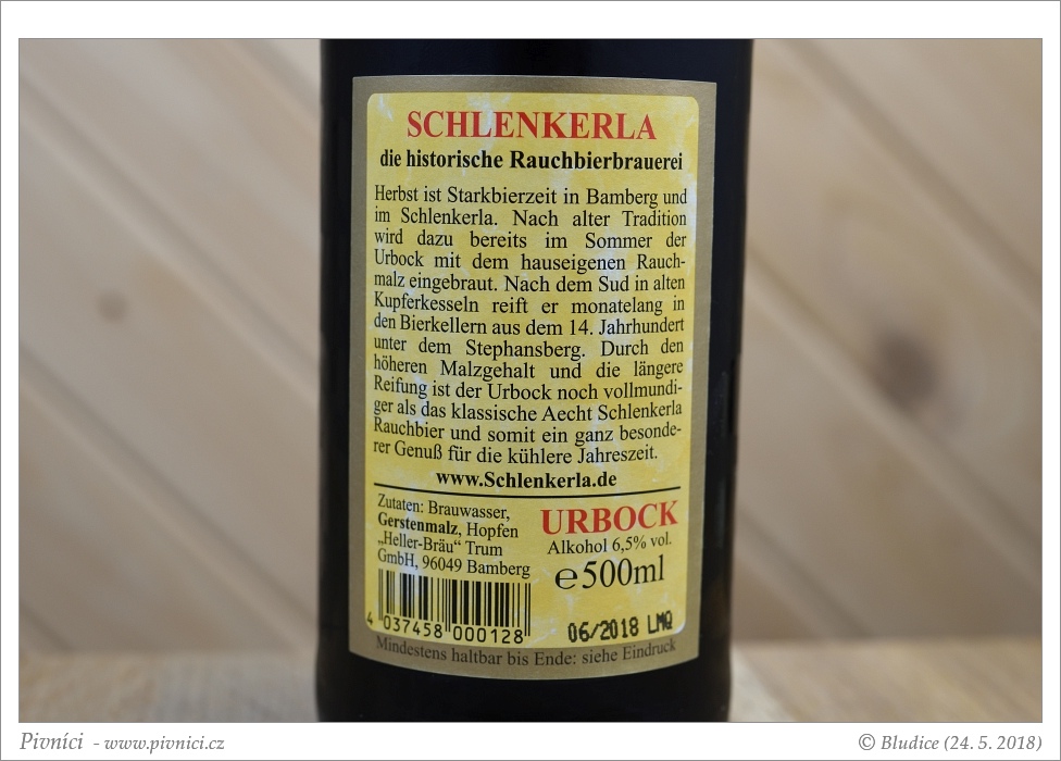Vynikající velmi výrazně nakuřované pivo s dlouhým a výrazným dozníváním. Skvěle se popíjí.Minimální trvanlivost: 30. června 2018