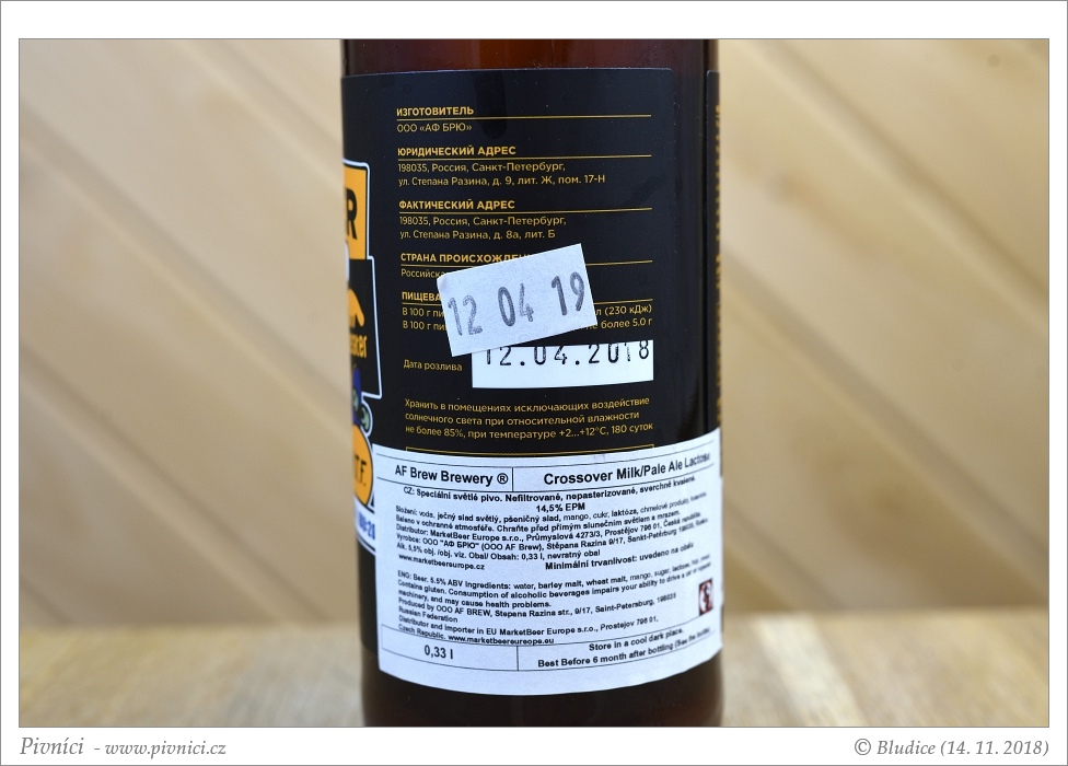 Zajímavé pivo, chutná jako multivitaminový džus. Celkem dobře pitelné.Lahvováno: 12. dubna 2018