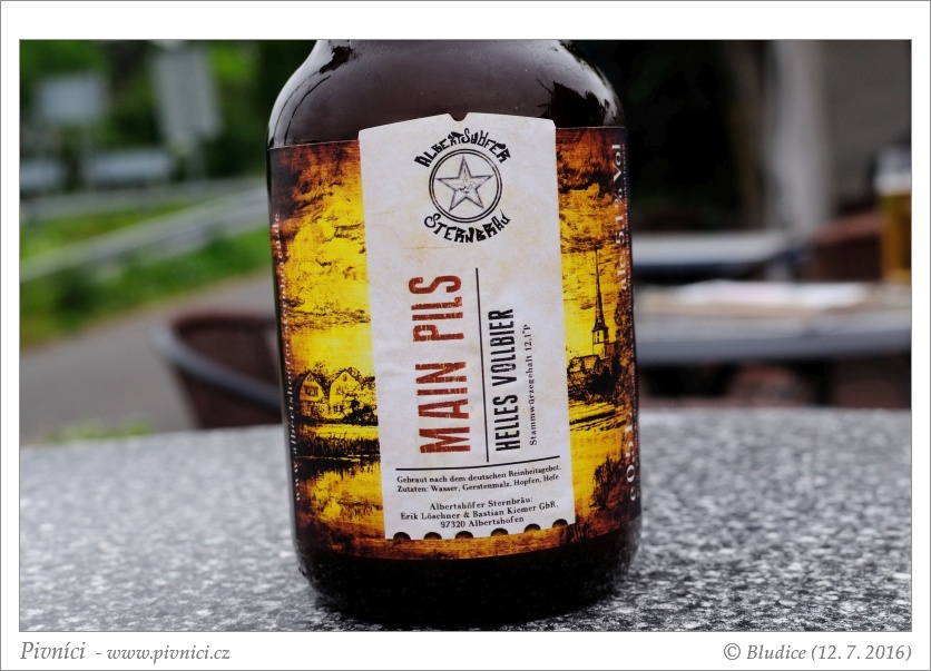 … lahev z pivovaru Albertshöfer. Albertshöfer Sternbräu MainPils je chutné pivo, pěkně chmelené, ale bohužel také …