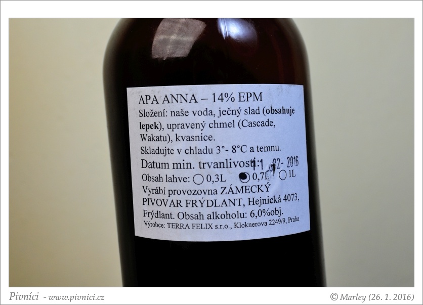 … do světa Zámecký pivovar Frýdlant. Je to Anna, čtrnáctka APA s americkou klasikou Cascade a novozélandským Wakatu. …